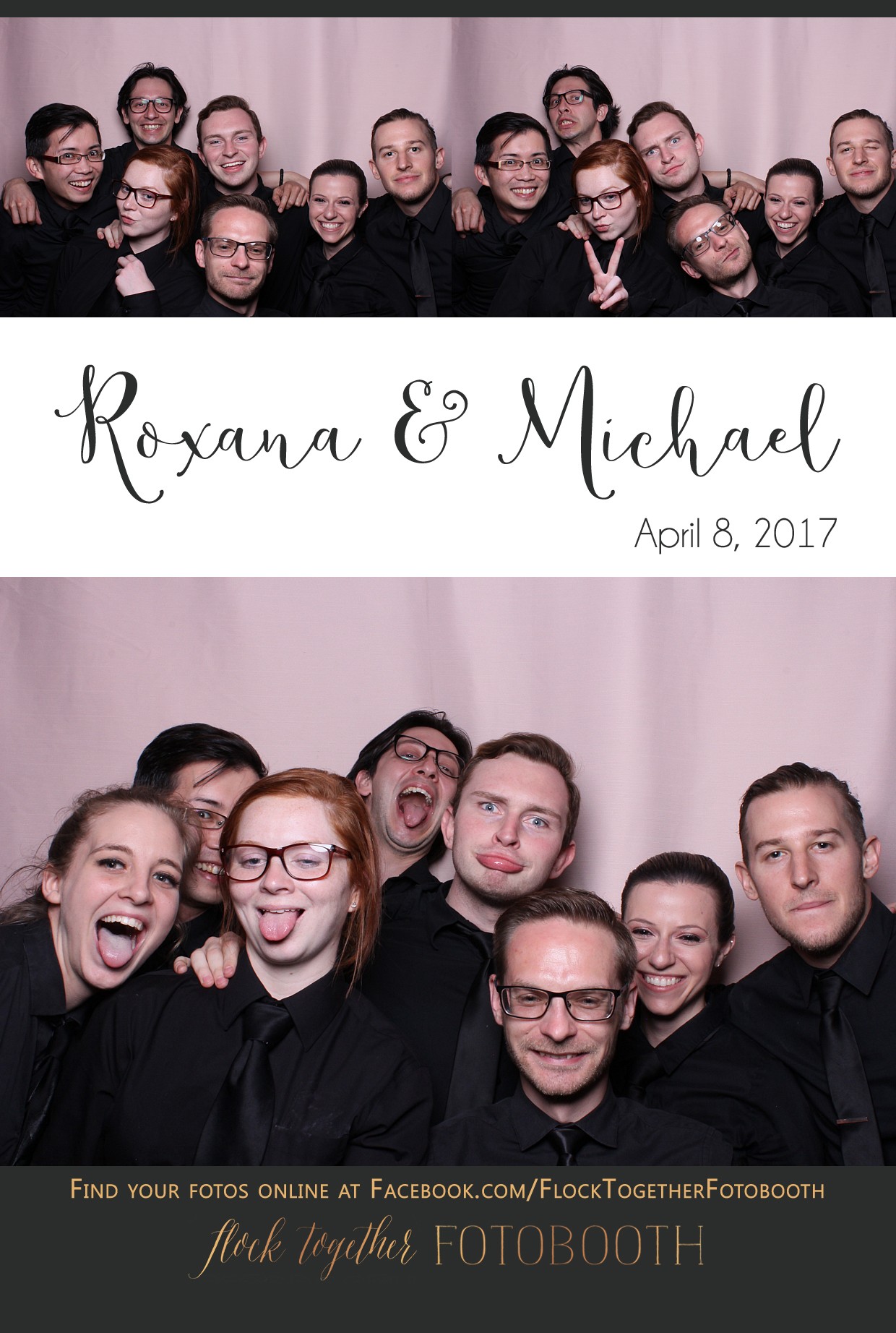 Wedding guests in an open air photo booth with a blush pink backdrop in Dallas Texas